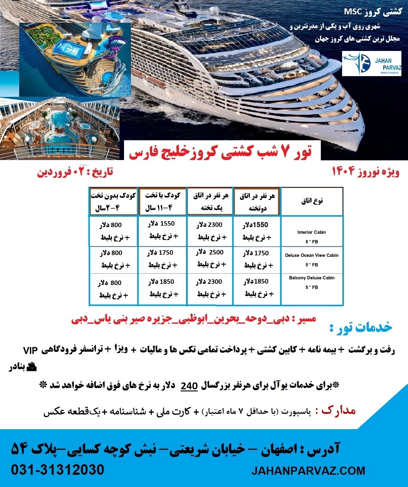 پراول » تور 7 شب کشتی کروز خلیج فارس نوروز 1404